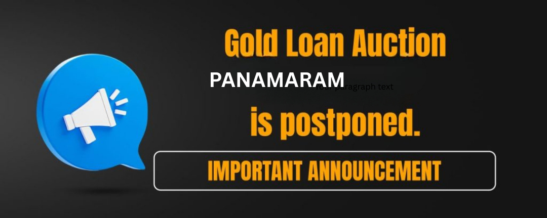 Gold Loan Auction” of Panamaram Branch is postponed to 18-09-2025 AT 9:30 am to 5:30: pm